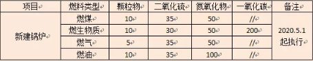 新建鍋爐限值與在用建成區限值相同。如下(單位mg/m3):